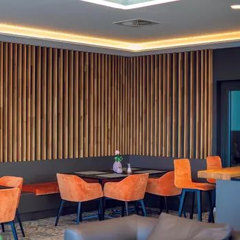 Sitzbereich mit Wandverkleidung aus Eiche